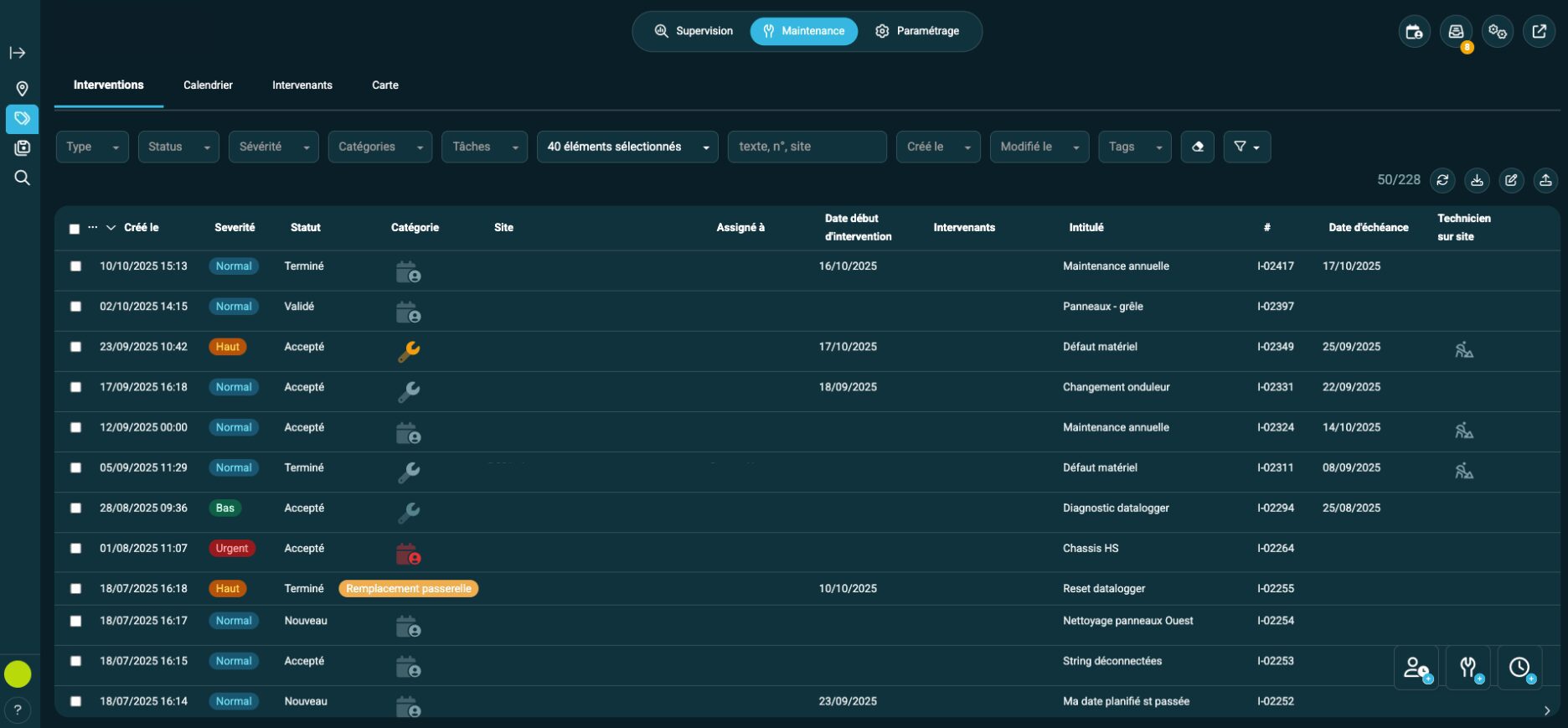 Un module de maintenance (GMAO) est proposé pour les centrales supervisées avec Energysoft.